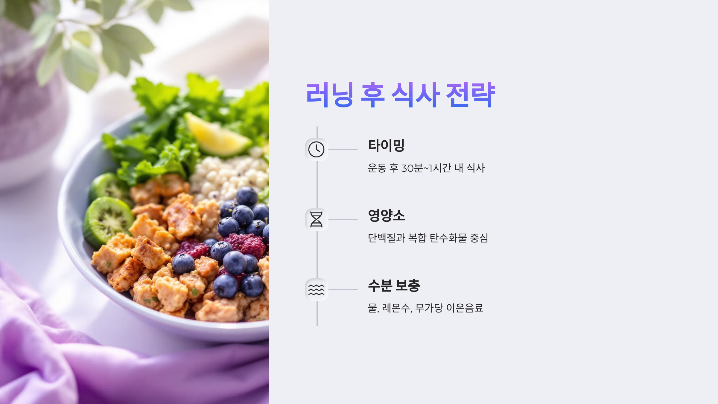 러닝 후 식사를 챙기는 습관이 생기면서 오히려 운동 루틴이 안정됐어요. “운동 후 이걸 먹어야지”라는 생각이 동기부여도 되고, 하루를 건강하게 마무리하는 기분이 들거든요. 특히 러닝으로 체력을 키우고 싶은 분들이라면, 운동 후 식사는 절대 거르지 마세요.