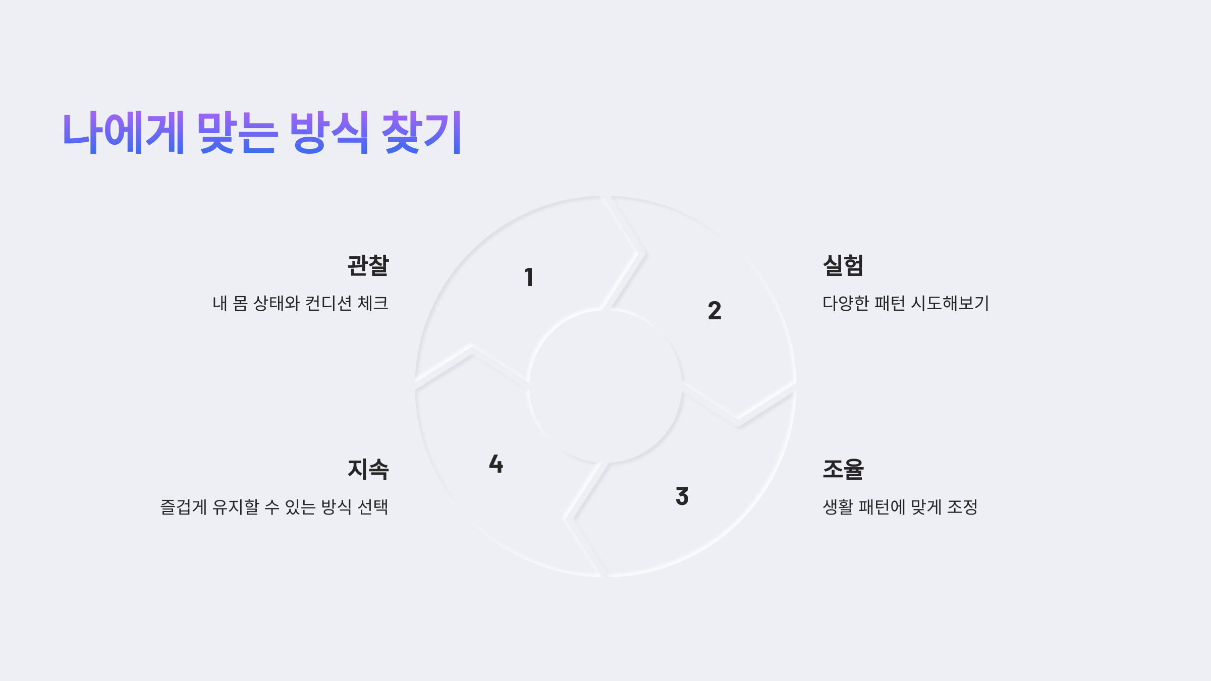 중요한 건 ‘내 몸이 어떤 상태인지’, ‘오늘은 어떤 운동을 하고 싶은지’를 매일 조금씩 관찰하는 거예요. 너무 정해진 틀에 나를 끼워 맞추기보다는, 나의 컨디션과 감정, 그리고 생활 패턴에 맞춰 조율하는 것. 이게 지속 가능한 러닝을 만드는 데 훨씬 큰 도움이 되었어요.