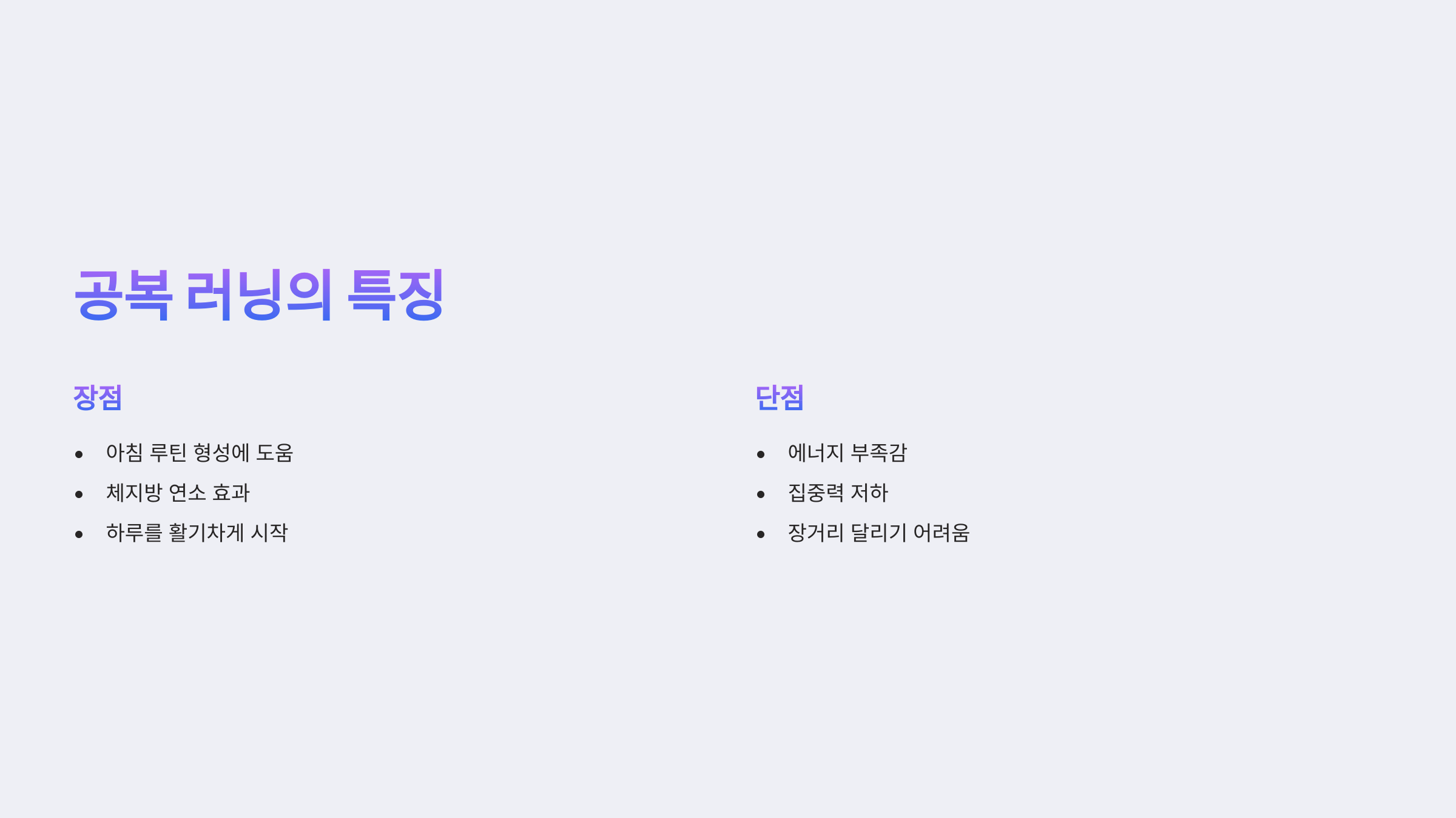 이렇게 짧고 가볍게 뛰는 공복 러닝은 몸에 부담이 적으면서도 하루를 활기차게 시작할 수 있어서 좋았어요. 특히 다이어트 중일 때는 체지방 연소 효과가 더 클 수도 있다는 점이 매력적이었죠. 물론 이건 체질이나 운동 강도에 따라 다르기 때문에 반드시 정답은 아니에요.