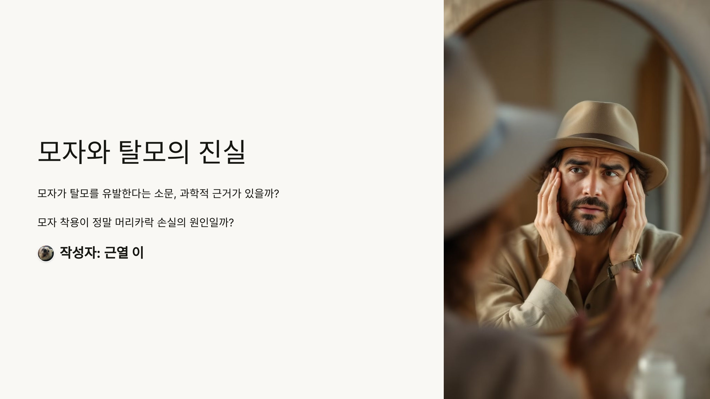 모자를 쓰는 것이 탈모를 유발한다는 것은 과학적으로 입증되지 않은 주장입니다. 오히려 유전적 요인과 호르몬 변화가 탈모의 핵심 원인입니다. 다만, 잘못된 방법으로 모자를 착용하면 두피 건강이 악화될 수 있으므로, 위생적인 관리와 적절한 사용법을 지키는 것이 중요합니다.