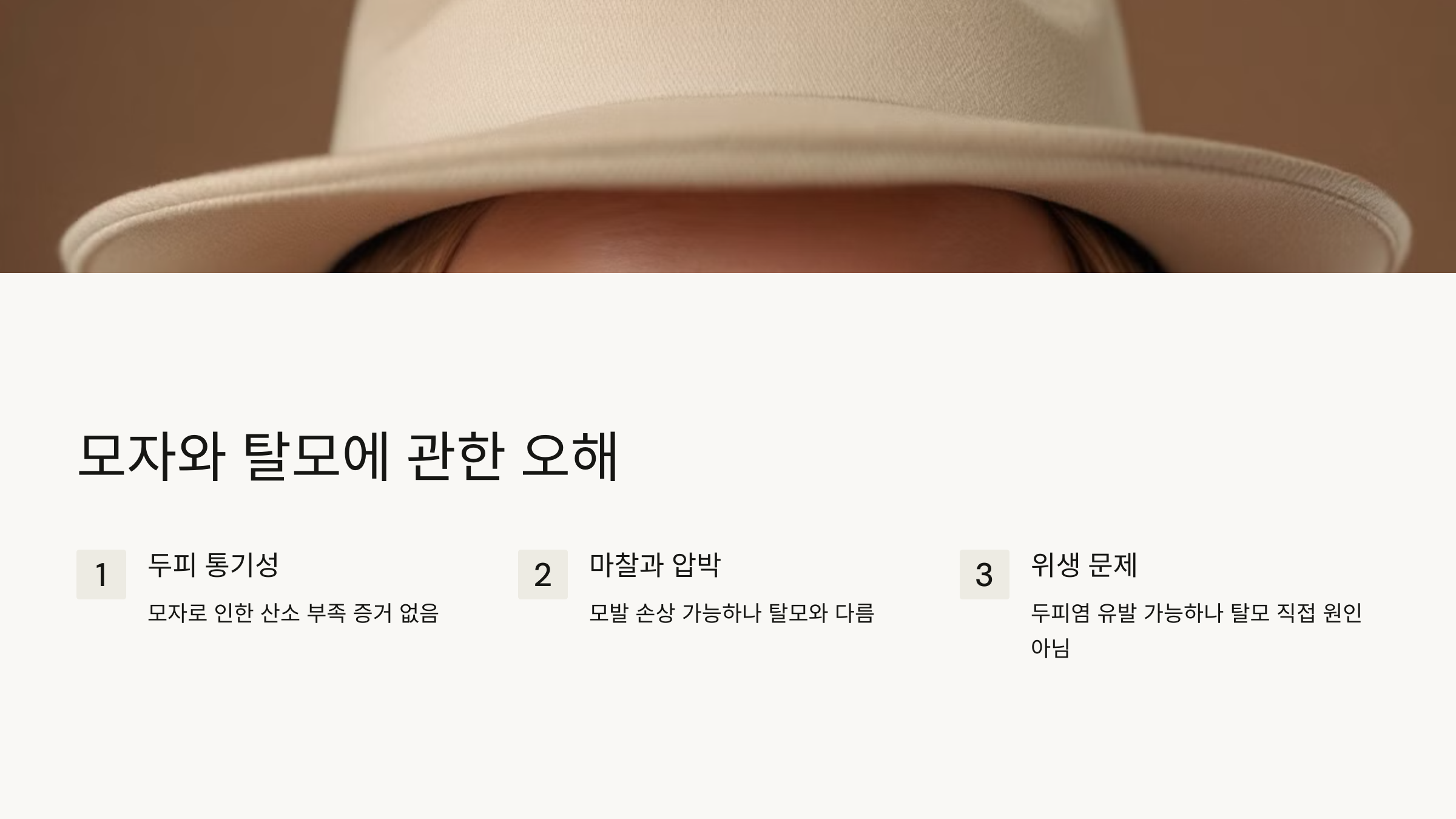 ✔️ 모자는 탈모를 유발하지 않는다.
