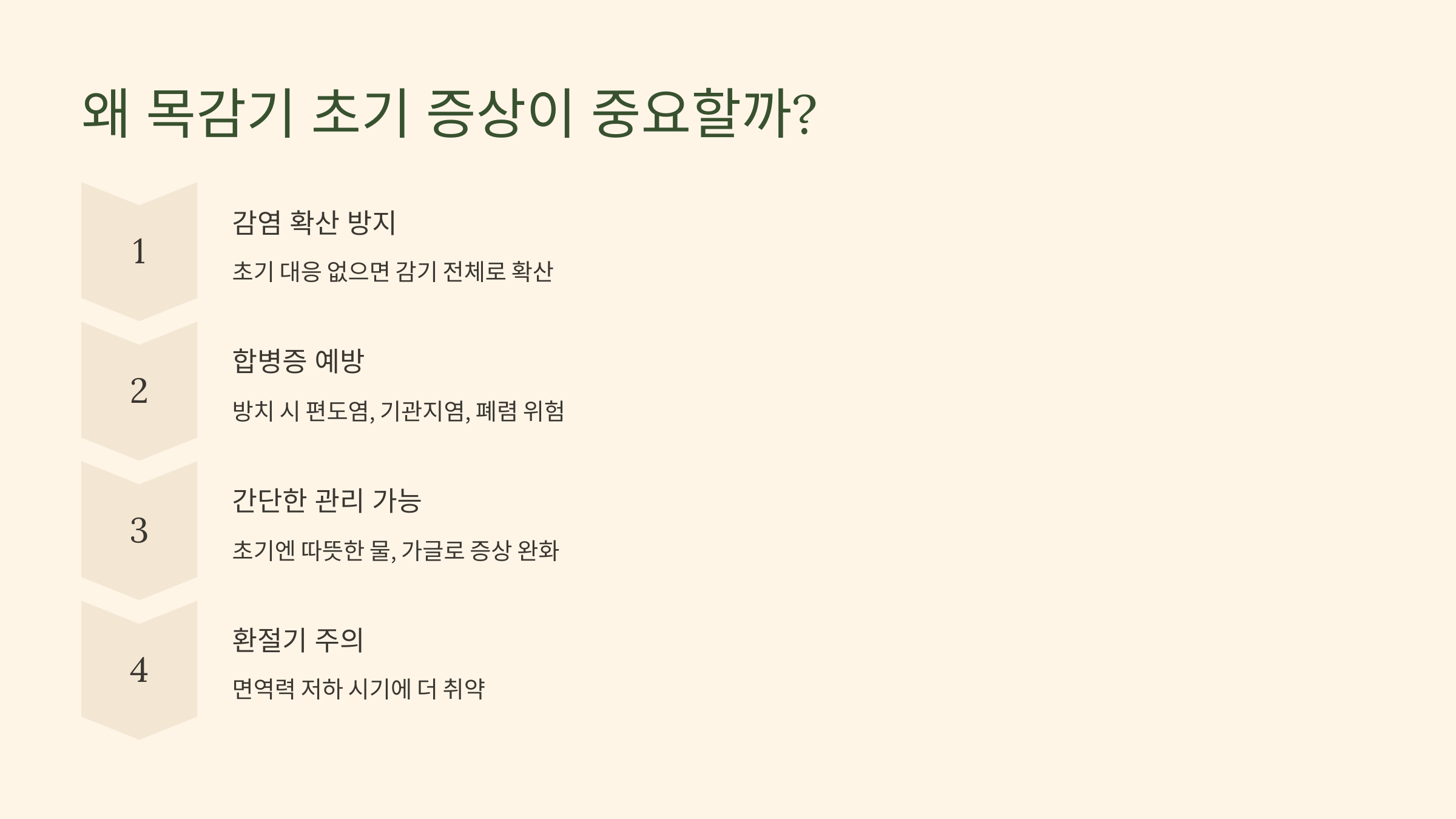 목감기 증상은 초기에 알아차리는 것이 핵심입니다. 가벼운 목의 이물감부터 시작되는 증상과 자가 관리법을 확인해보세요. 건강은 조기 대처가 생명입니다!