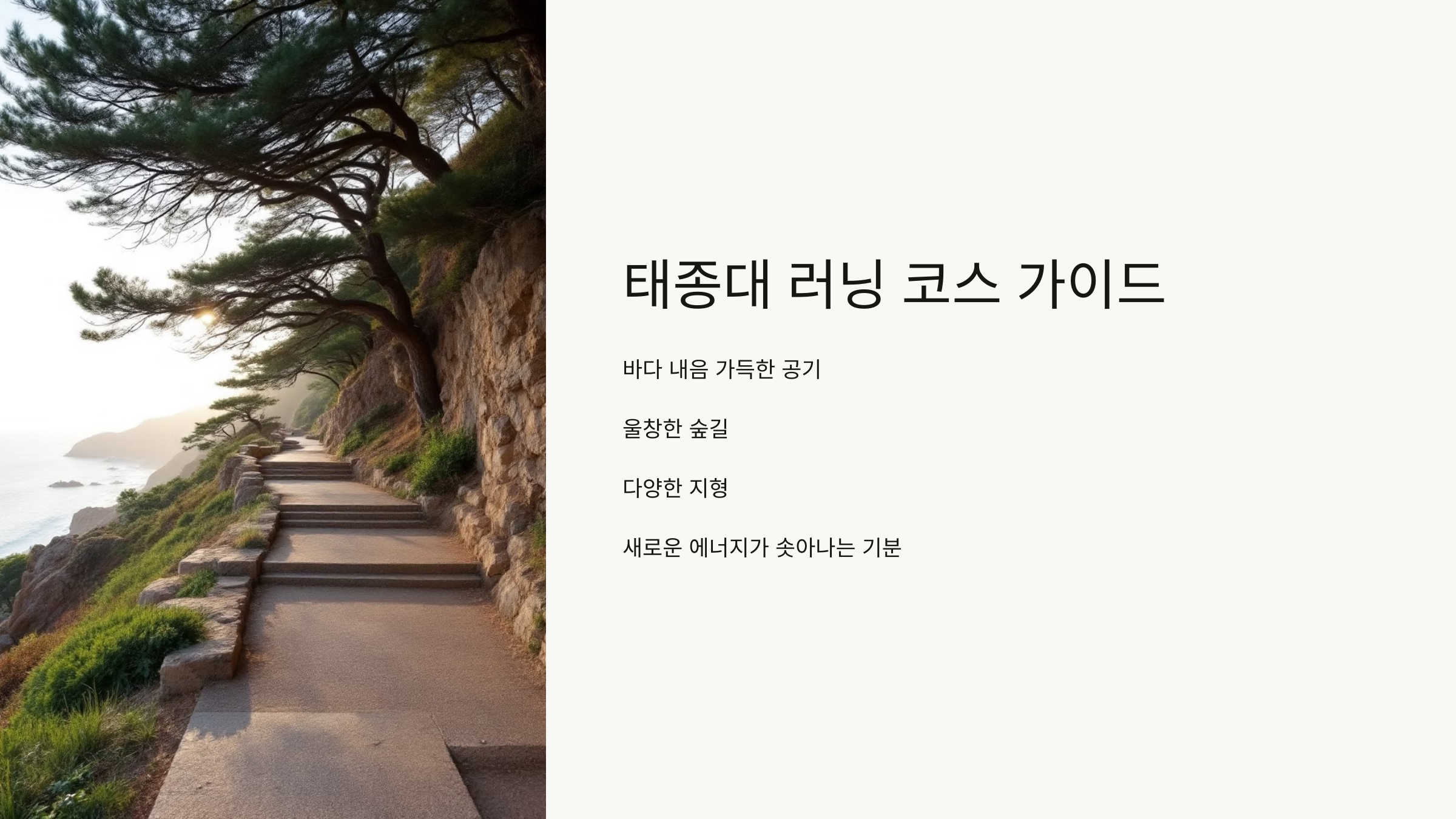 부산에서 러닝을 즐기시는 분들이라면 꼭 한 번쯤 들어보셨을 "태종대 러닝 코스". 저 역시도 운동을 좋아하는 사람으로서 여러 코스를 경험해봤지만, 태종대는 특별히 제 마음을 사로잡았어요. 바다 내음 가득한 공기, 울창한 숲길, 그리고 다양한 지형 덕분에 달릴 때마다 새로운 에너지가 솟아나는 기분이 들었거든요. 오늘은 제가 직접 달려본 태종대 러닝 코스를, 여러분께 친절하고 생생하게 소개해드리려고 합니다. 함께 상상하며 달려보는 기분으로 읽어주세요!