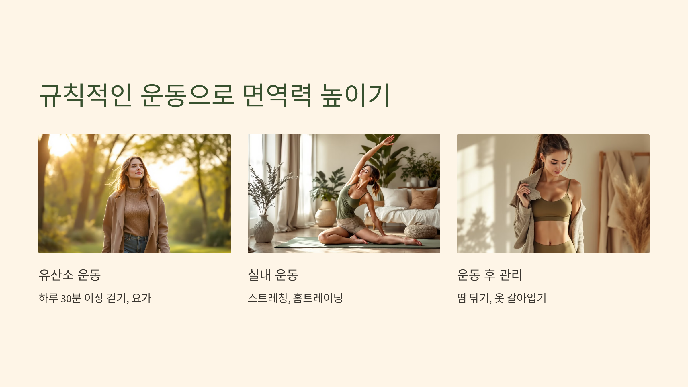 - 하루 30분 이상 가벼운 유산소 운동 (걷기, 요가 등) 하기