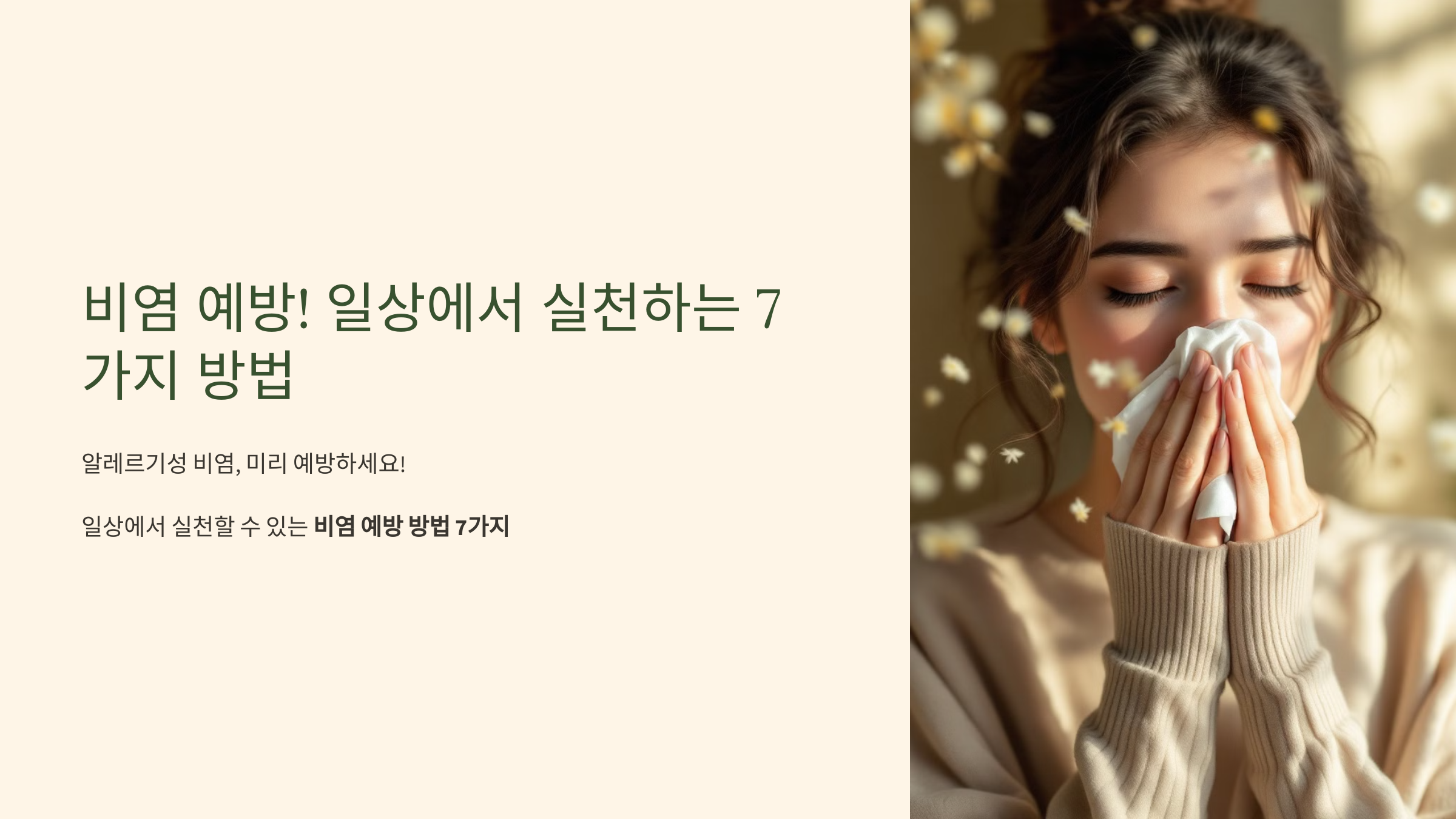 비염은 많은 사람들이 겪는 흔한 질환이지만, 미리 예방하면 증상을 줄이고 생활의 질을 높일 수 있습니다. 특히 알레르기성 비염은 계절의 변화, 미세먼지, 꽃가루 등 외부 환경 요인에 의해 쉽게 악화되는데요. 이번 글에서는 일상에서 실천할 수 있는 비염 예방 방법 7가지를 소개해드립니다.