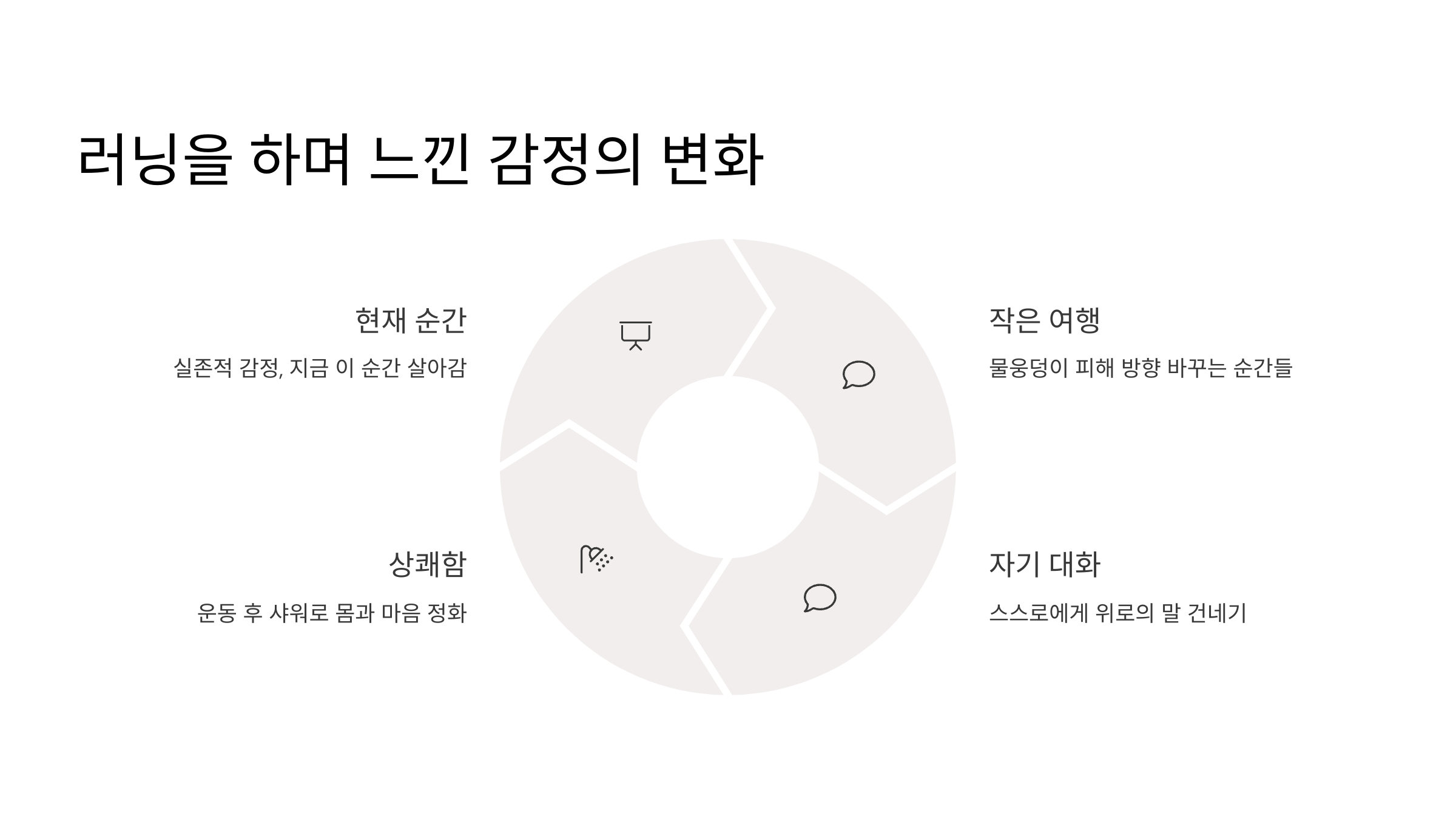 빗방울이 내리던 그 길 위에서, 발밑의 물웅덩이를 피해 이리저리 방향을 바꾸며 뛰던 순간순간이 마치 하나의 작은 여행 같았어요. 주변에 아무도 없고, 오직 저와 빗소리만 있는 그 풍경 속에서 스스로에게 말을 걸기도 했고요. "지금 이대로도 괜찮아. 잘하고 있어." 라고요. 혼자 달리다 보니 자연스럽게 자신과 대화를 나누게 되고, 그 안에서 오히려 위로를 받는 기분이었어요. 정말 이상하게도 마음이 차분해지고, 머릿속이 정리되는 경험을 했죠.