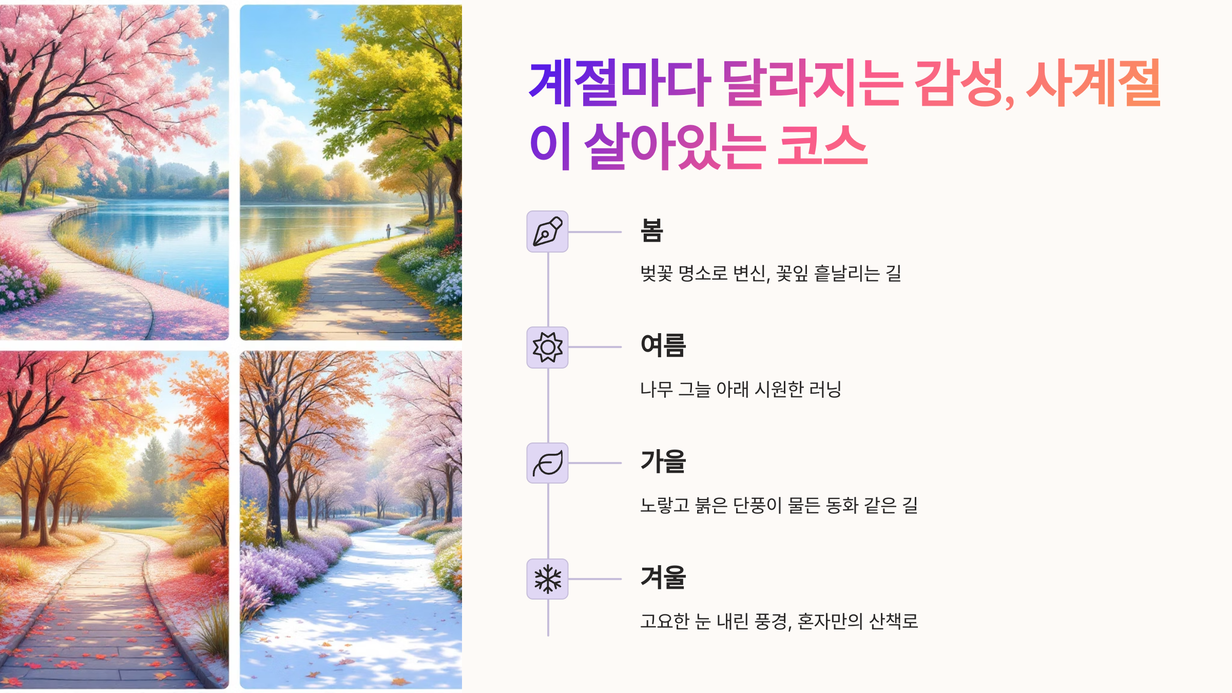 계절마다 달라지는 감성, 사계절이 살아있는 코스