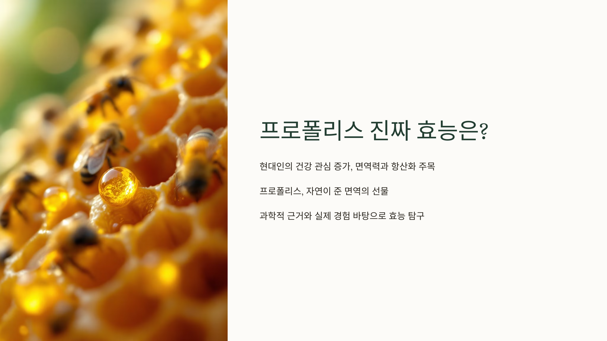 현대인이라면 누구나 건강에 대한 관심이 높습니다. 특히 면역력과 항산화 작용은 요즘처럼 바이러스나 스트레스가 넘쳐나는 시대에 더욱 주목받고 있는 키워드죠. 그중에서도 '프로폴리스'는 오랜 시간 동안 자연이 준 면역의 선물로 불리며 사랑받아왔습니다. 하지만 단순히 '좋다'는 말만 듣고 먹는 건 부족합니다. 정말 프로폴리스가 어떤 효능을 갖고 있는지, 우리 몸에 어떻게 작용하는지, 과학적인 근거와 실제 경험을 바탕으로 하나씩 짚어보려고 합니다. 이 글에서는 면역력 강화부터 항산화 작용, 그리고 우리가 놓치기 쉬운 기타 효능까지 자세히 살펴봅니다.