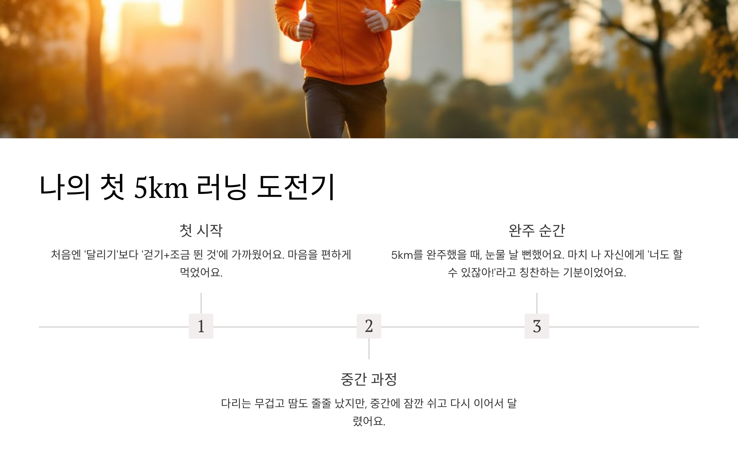 처음 5km를 해낸 후, 저는 스스로에게 약속했어요. ‘일주일에 두세 번만이라도 하자.’ 그리고 그렇게 몇 주가 흘렀을 뿐인데, 정말 신기한 변화들이 찾아왔어요.